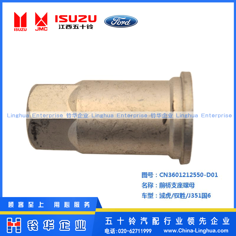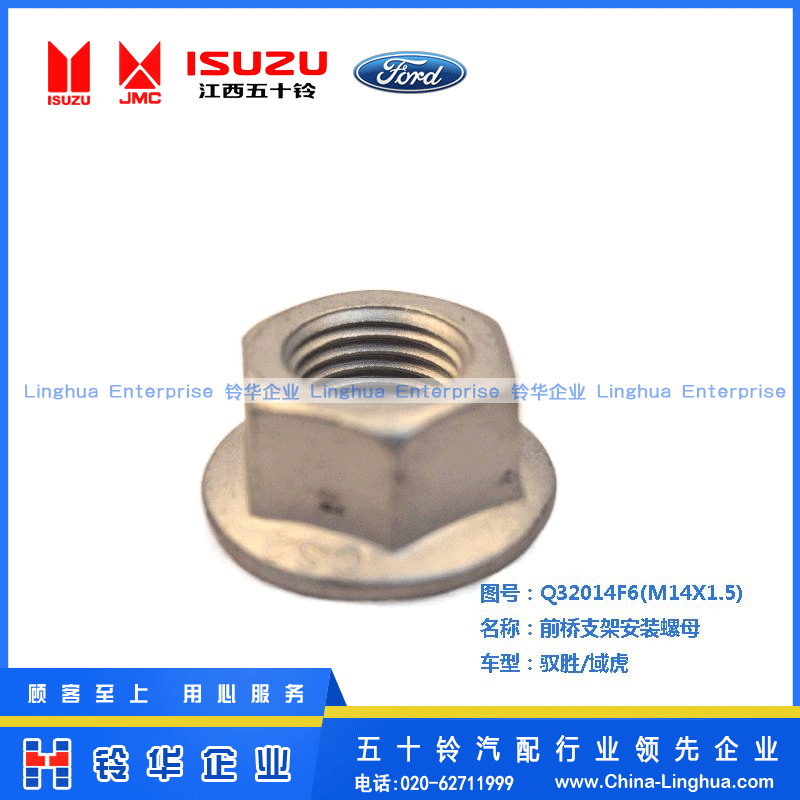 產品名稱:前橋支架安裝螺母 適用車型:馭勝/域虎 原廠編碼:Q32014F16(M14X1.5)